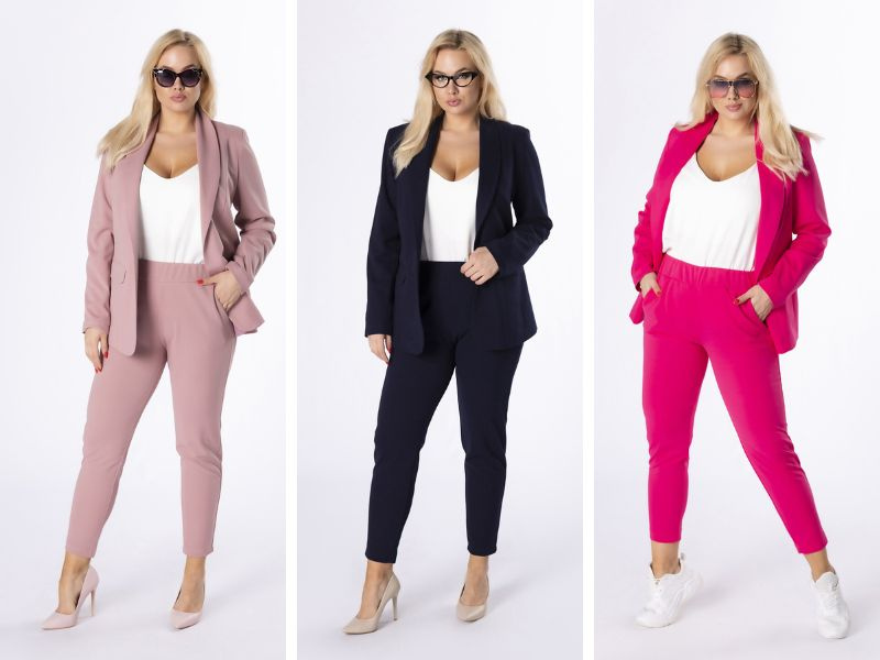 Elegancki garnitur damski JUSPOL kolor jasny beżowy plus size rozmiar 42