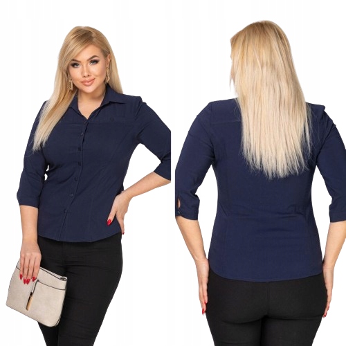 Bluzka koszulowa SANDRA rękawy 3/4 kolor granatowy rozmiar 50