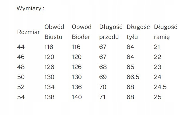 Aby dobrać odpowiedni rozmiar, pamiętaj, że podane wymiary w tabeli dotyczą produktu mierzonego na płasko.