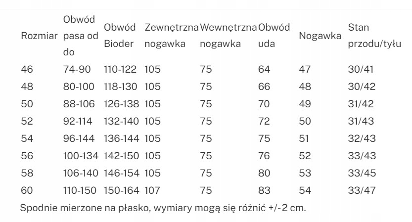 W pasie jest guma, zwróć uwagę szczególnie na rozmiar bioder . Materiał jest lekko rozciągliwy, nie dodawaj cm.