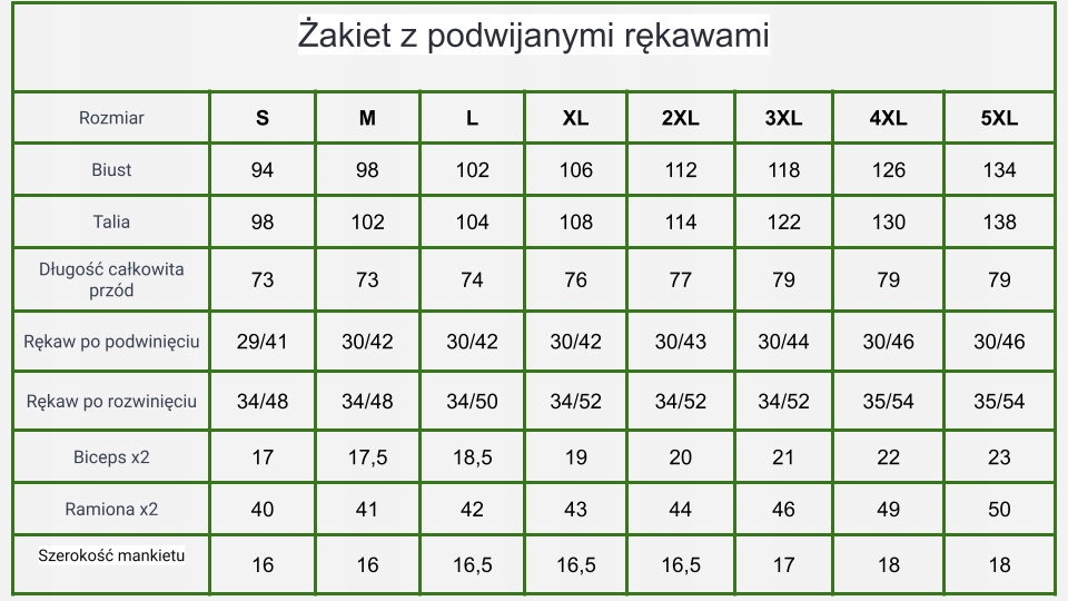 PRZED ZAKUPEM ZALECAM SPRAWDZENIE WYMIARÓW W TABELI